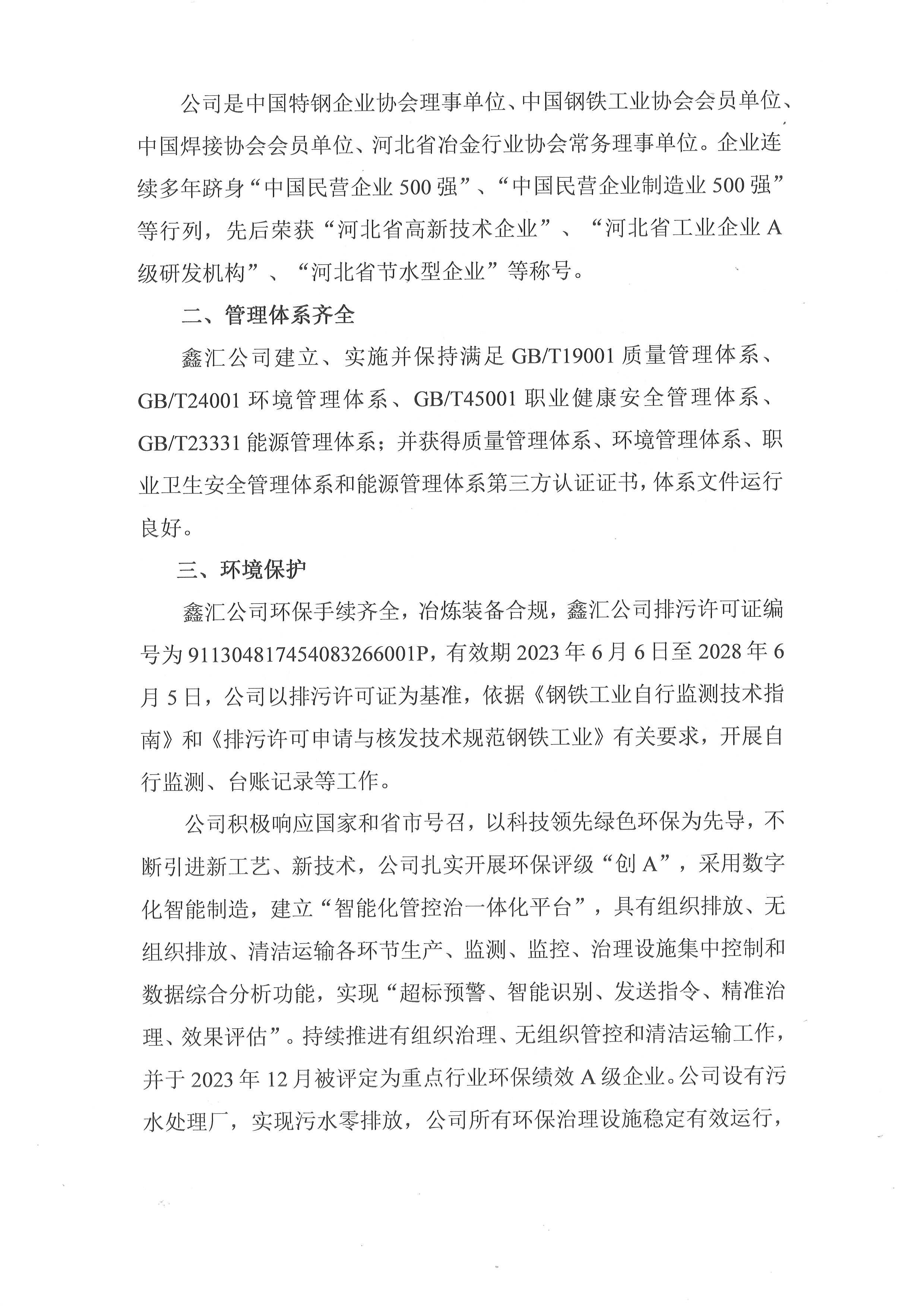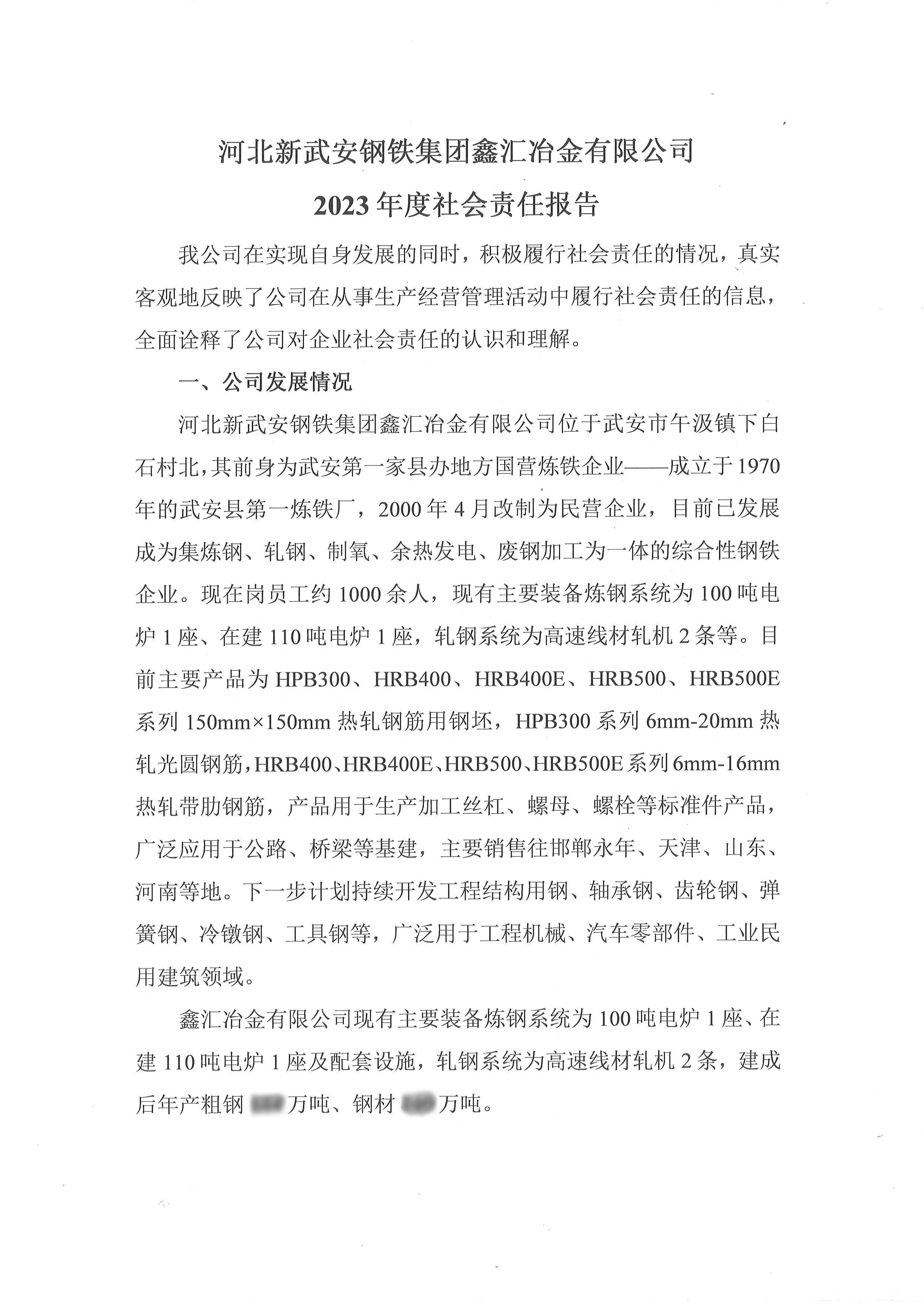 河北新武安鋼鐵集團鑫匯冶金有限公司2023年度社會責任報告