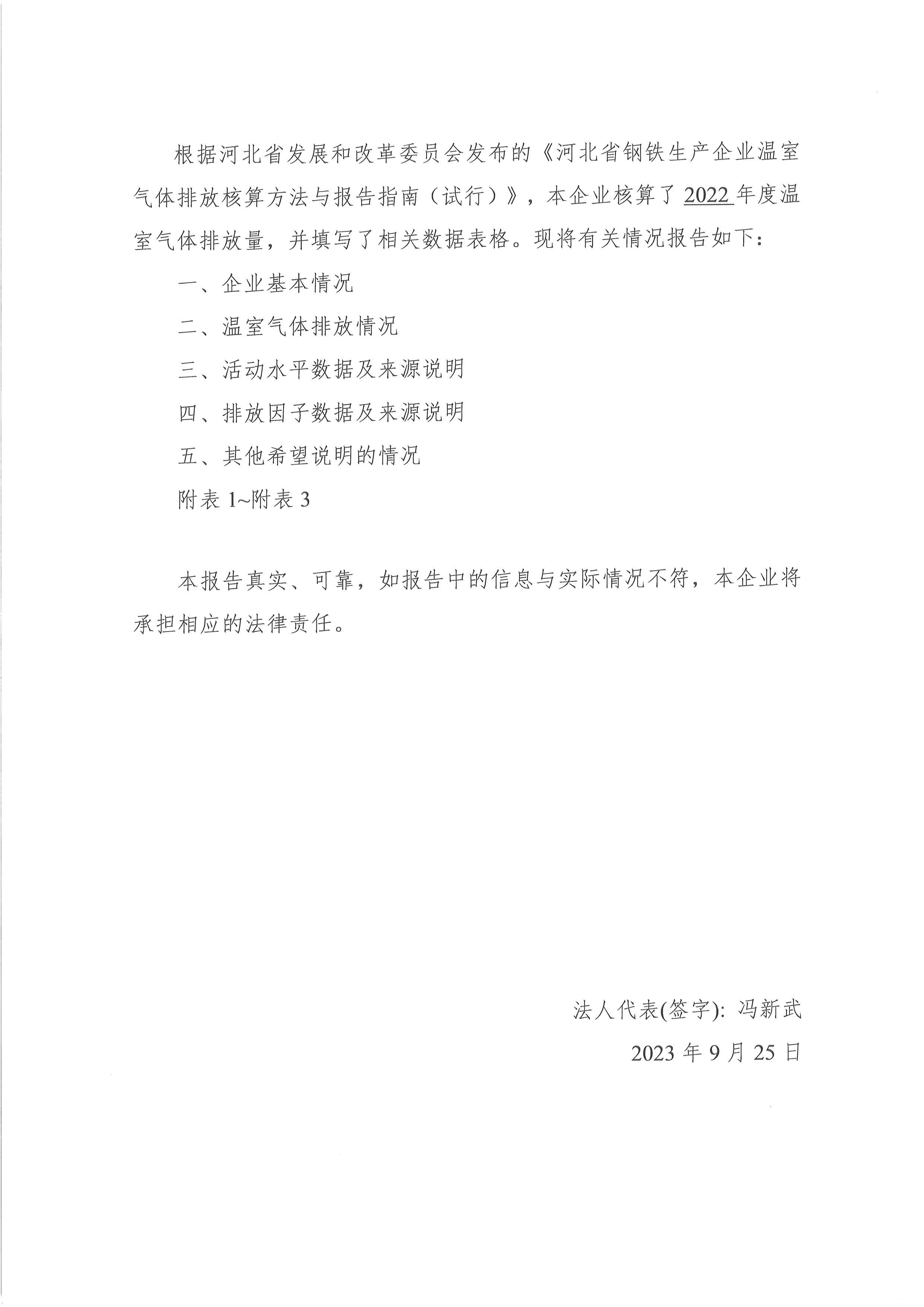 2022年河北新武安鋼鐵集團(tuán)鑫匯冶金有限公司碳排放報(bào)告