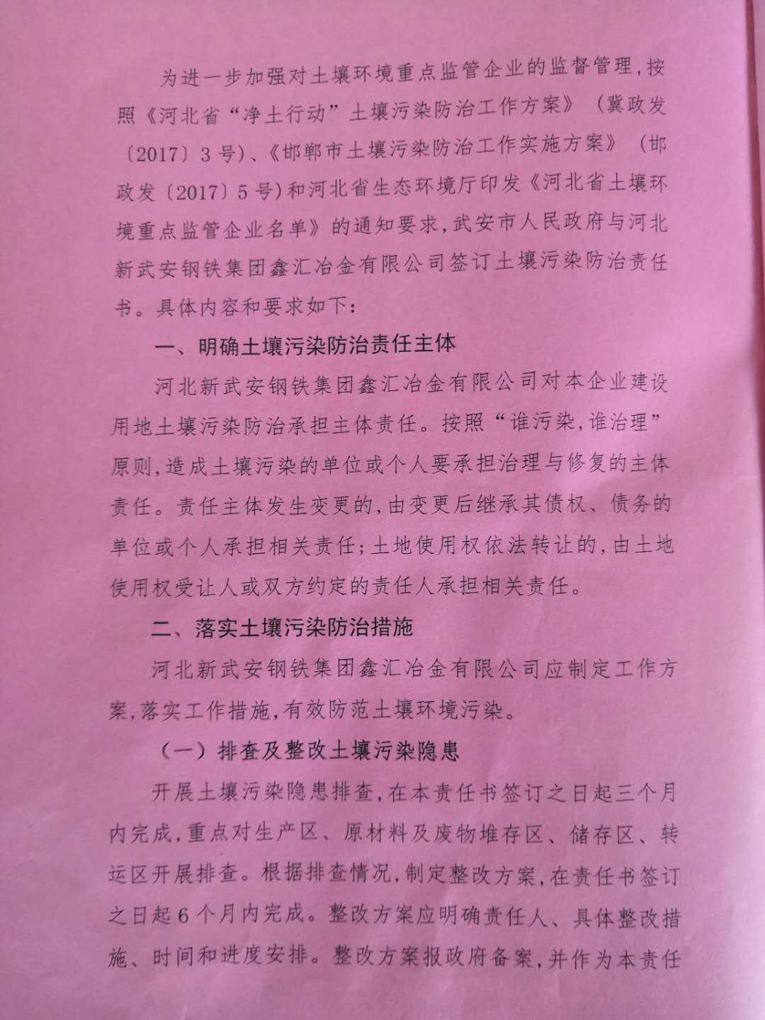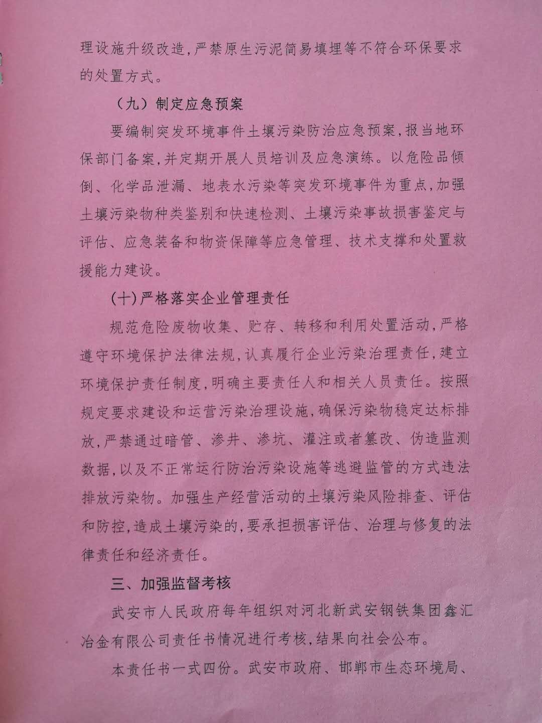 武安市人民政府土壤環(huán)境重點監(jiān)管企業(yè)污染防治責任書